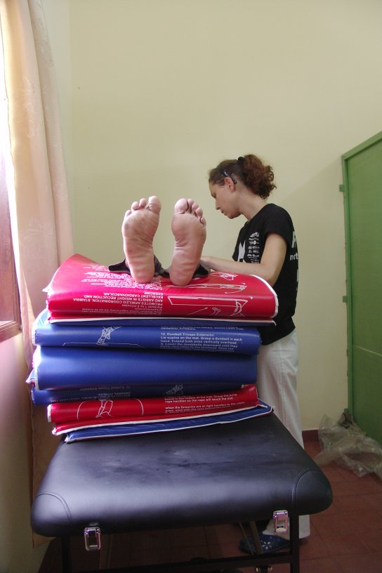 Po poludniu zorganizowane byly pierwsze zajecia grupowe ze starszymi osobami, ktrore zbieraja sie przy parafii. Przyszlo ponad 20 osob. Zapatrzeni w Ilonke jak w obrazek cwiczyli energicznie z usmiechem na twarzy. Mimo swoich lat ich zaangazowanie bylo niesamowite. Aby urozmaicic nasze cwiczenia, cwiczylismy z woreczkami wypelnionymi soja. Niespotykane I nieznane tu woreczki do cwiczen wywolaly u co poniektorych zabawne sytuacje – jedna z Pan spytala czy ta soja to na podwieczorek. ![]()