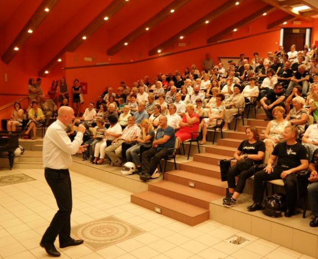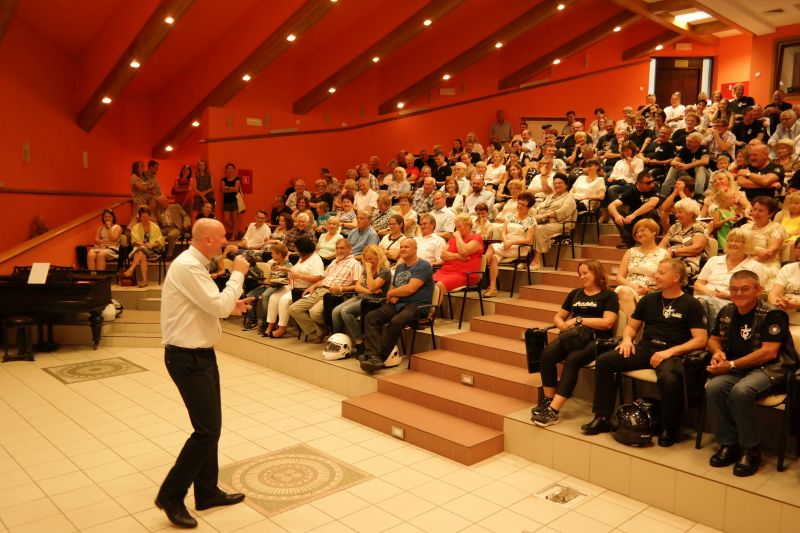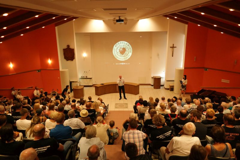 Po wspólnym spotkaniu, kolejną godzinę spędziliśmy w mniejszych grupach. Darczyńcy wysłuchali poruszającego świadectwa Bartka pracującego przez rok w Sudanie Południowym, wolontariusze wraz z rodzicami mieli okazję do integracji podczas konkursu wiedzy o misjach, a motocykliści oglądając zdjęcia wspominali piękny czas spędzony w drodze do Watykanu. Następnie przyszedł czas na obiad w Wioskach Świata – Parku Edukacji Globalnej oraz Piknik Rodzinny.