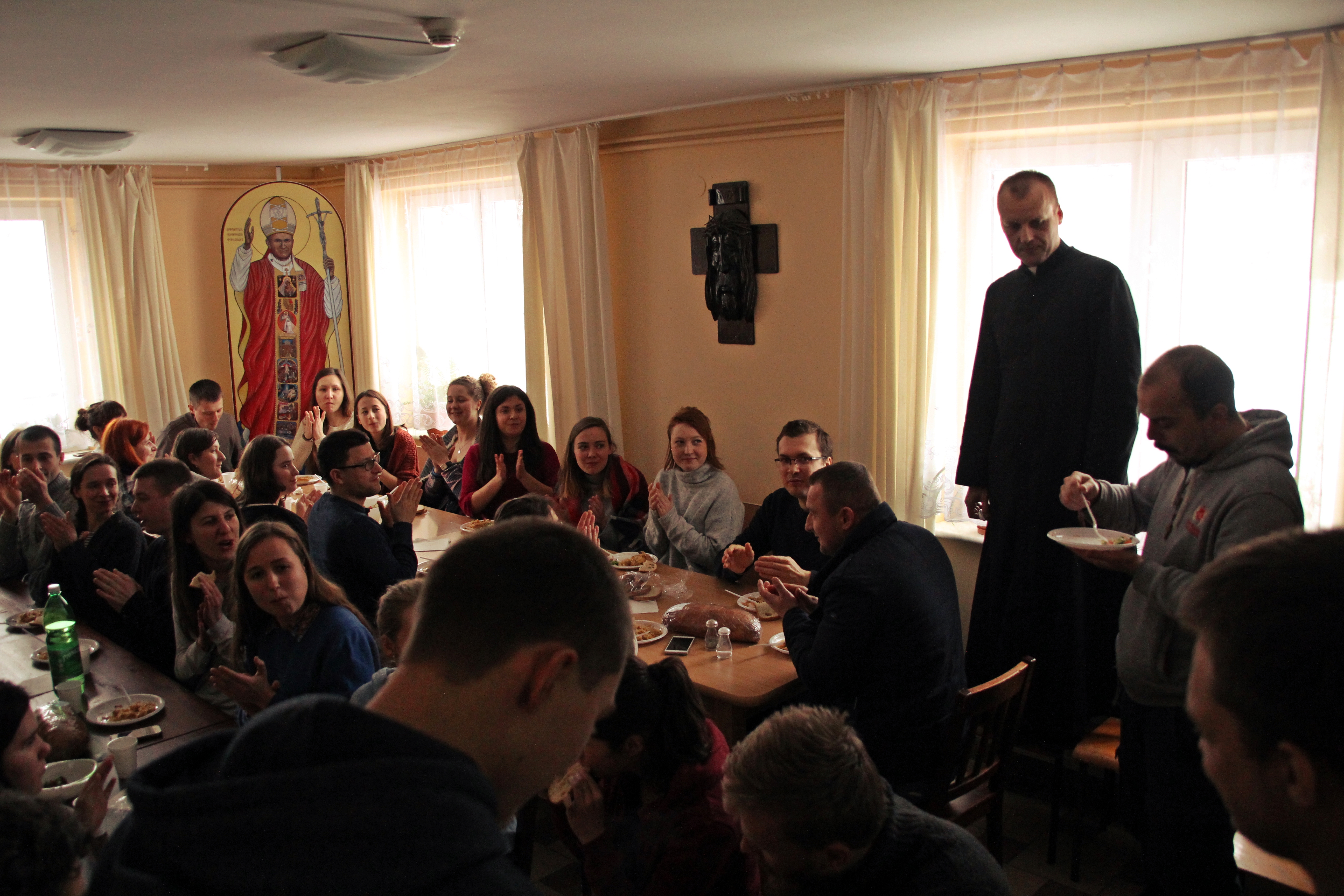 W niedzielę zakończyliśmy czas postu i milczenia. Udaliśmy się na Mszę Świętą do kaplicy w Gostwicy. Tam mieliśmy okazję zobaczyć, jak zżyci są ze sobą tutejsi mieszkający. Wysłuchaliśmy rekolekcji, zdających się nie mieć końca życzeń imieninowych dla księdza proboszcza i (bardzo głodni) wróciliśmy do naszego domu salezjańskiego w Gostwicy. Czekała na nas wspaniała niespodzianka… Pięknie podane śniadanie z dopracowanymi najmniejszymi szczegółami. Radości nie było końca! W jadalni słychać było znów gwar rozmów i dookoła uśmiechnięte twarze. Ludzie byli jakby odmienieni przez ten dzień ciszy.