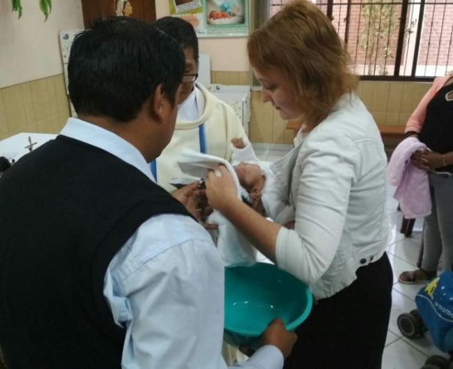Pamiętam również naszą pierwszą Mszę Św. w domu w sierpniu, zaraz po przyjeździe do Cochabamby. Poznałyśmy wtedy pewną rodzinę z miesięcznym dzieciątkiem na rękach. Okazało się, że od bardzo długiego czasu, małżeństwo to przychodziło każdego miesiąca aby prosić o nowe życie. Jeszcze wtedy Msza Św. nie odbywała się w soboty, ale każdego 25. dnia miesiąca. Mały Josue przyszedł na świat dokładnie 25 lipca! Teraz małżeństwo to dalej pojawia się na Eucharystii w naszym Centrum, ale już z inną intencją – dziękczynną, za nowego członka rodziny!