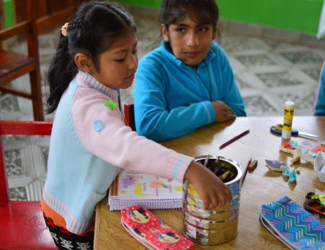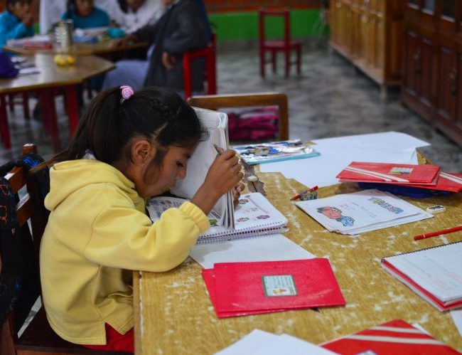 Najmłodsze uczennice są w przedszkolu – często muszą coś powtórzyć po liniach albo napisać same np. ostatnio literki z alfabetu. Czasem jakaś literka jest trudniejsza, albo ciężko trafić w to miejsce, w tą kratkę, która powinna być. Siedziałyśmy trzy: Rinelda, ja w środku i Leydi. Na zmianę dziewczynki mówiły, że nie mogą, ale po chwili wracały do pracy. Do momentu gdy połączyły siły i obie powiedziały, że nie potrafią, odsunęły się od stolika obrażone… i wtedy.. ja też się odsunęłam do ich krzesełek i tym samym tonem powiedziałam, że ja też nie umiem. Ich szczery śmiech był jedną z piękniejszch rzeczy.. Przytuliłyśmy się i wróciłyśmy do zadania. Bo one mogą i umieją, może tylko same w to nie wierzą.