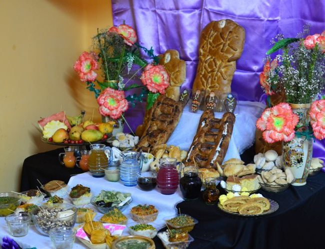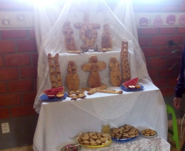 Po południu poszłyśmy na Eucharystię – w ciągu tego tygodnia nie należą one do najkrótszych, bo jest bardzo wiele intencji, a tutaj ksiądz czyta wszystkie w czasie Mszy, to ważne dla ludzi. Podobno raz było około 30 kartek. Także ludzi też jest dużo. A po udało się nam spędzić chwilę na rozmowę z Padre – zostałyśmy niespodziewanie zaproszone na kawę – ale tu wszystko jest bardzo spontaniczne i niespodziewane, więc bardzo miło poznać trochę ich mentalność co do świąt. I dopiero wieczorem wyruszyliśmy z dziećmi i młodzieżą się modlić. Ale nie na cmentarz. Tutaj chodzi się po domach. Te, które są przygotowane są oznaczone czarną kokardką na drzwiach i otwartymi drzwiami. A przygotowane to znaczy, że są przepiękne ołtarzyki ze zdjęciem zmarłej osoby z tego domu, kwiaty, czasem świeczki i oczywiście jedzenie, które ta osoba lubiła. Wchodzimy do takiego domu modlimy się całą grupą na głos, można coś pośpiewać, a po skończeniu siadamy na chwilkę, odpocząć, może porozmyślać. Ale to na chwileczkę, bo czekają inne dusze w innych domach. Gdy my siadamy wchodzi następna grupa, a my dostajemy ciasteczka i coś do picia. Przesypujemy ciastka do reklamówki i idziemy dalej. Do reklamówki, bo nie sposób zjeść całego talerza ciastek w każdym domu. Po drodze mijamy wiele grup: zarówno dzieci, młodzież, dorosłych, jak i starszych. Czas modlitwy. W Polsce też się modlimy. Więc pewnie to jest istotą tych świąt. Tylko pytanie jest na ile świadomie – zarówno u nas jak i u was… Mówią, że te nasze modlitwy, a szczególnie odpusty mają wielką moc dla dusz. Wielką moc…