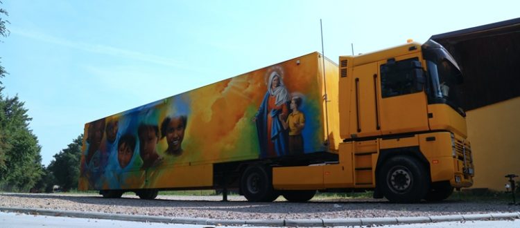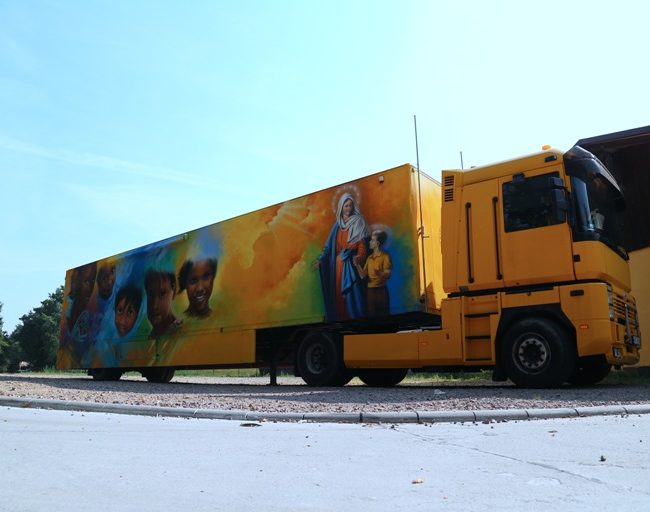 Salezjański Wolontariat Misyjny przygotował na ten szczególny dzień specjalną niespodzankę. Ciężarówka z mobilną wystawą o życiu i działalności Księdza Bosko oraz misyjnej pracy jego następców jest już gotowa do drogi! Gotowa, by odwiedzić Twoją Parafię! Na naczepie widnieją wizerunki Maryi Wspomożycielki Wiernych oraz Jezusa Dobrego Pasterza czuwających nad misyjnym dziełem Rodziny Salezjańskiej.
