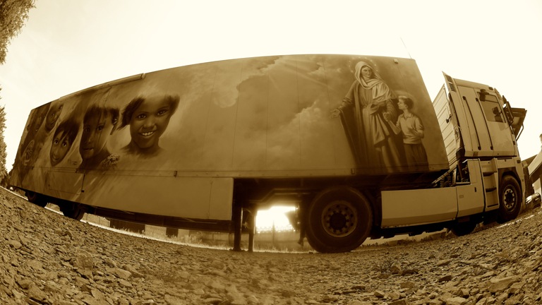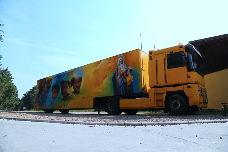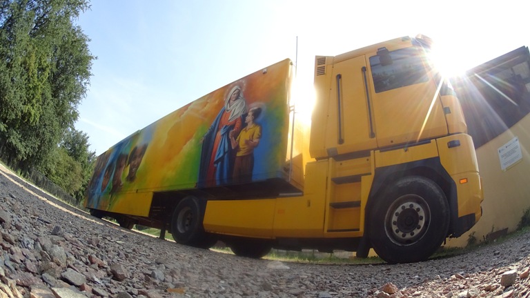 Salezjański Wolontariat Misyjny przygotował na ten szczególny dzień specjalną niespodzankę. Ciężarówka z mobilną wystawą o życiu i działalności Księdza Bosko oraz misyjnej pracy jego następców jest już gotowa do drogi! Gotowa, by odwiedzić Twoją Parafię! Na naczepie widnieją wizerunki Maryi Wspomożycielki Wiernych oraz Jezusa Dobrego Pasterza czuwających nad misyjnym dziełem Rodziny Salezjańskiej.