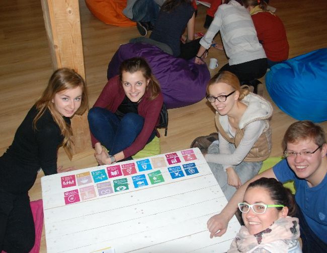 Czym różni się organizacja pozarządowa od wolontariatu, albo jak daleko jest od grantu do darowizny? Kto jest beneficjentem, a kto darczyńcom? Te pytania zadawały nam Dominika Oliwa i Agnieszka Mazur – trenerki Edukacji Globalnej, które prowadziły dla nas całodzienne zajęcia. Odpowiedzi na zadane pytania poszukiwaliśmy wśród aktywnych gier i quizów. Nasza pamięć walczyła również z siedemnastoma punktami, które nazywają się Cele Zrównoważonego Rozwoju (17 celów, których realizację ONZ ustanowił na lata 2015 – 2030).