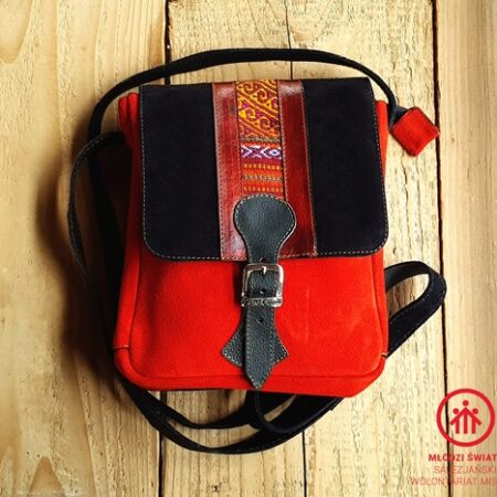 Unikalna torebka listonoszka z Peru,czerwona-Rękodzieło BOHO