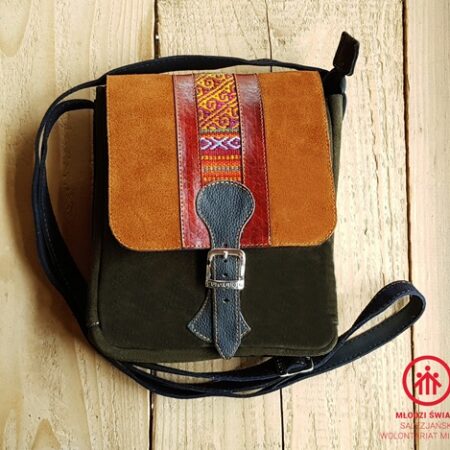 Unikalna torebka listonoszka z PERU, ciemno oliwkowa-Rękodzieło BOHO