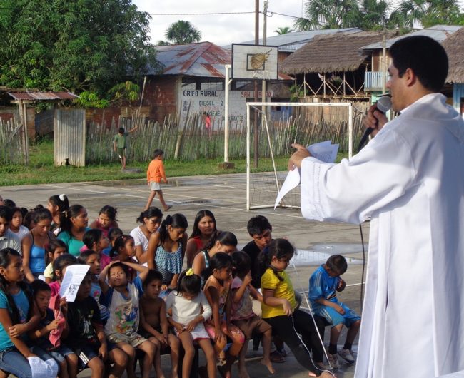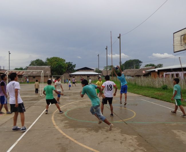 W końcu maja organizowaliśmy tydzień zawodów sportowych poprzedzających święto Maryi Wspomożycielki Wiernych. Od środy do soboty można było zaprezentować swoją technikę i zawzięcie w poszczególnych dyscyplinach: piłkarzyki, tenis stołowy, koszykówka, siatkówka, piłka nożna. W sobotę wieczorem w oratorium odbyła się tzw. velada (z hiszp. vela – „świeca”) – czuwanie przy figurce Maryi przeplatane pieśniami, tańcami ludowymi. Wspaniale zaprezentowali się uczniowie z internatu prowadzonego przez siostry zakonne. Wszyscy pochodzą z rodzin indiańskich, więc przedstawili nam typowe tańce plemion awajun i achuar. Stroje efektowne – chłopaki mieli na głowach opaski z piór tukana i rodzaj spódnicy (nie jest to szkocki wynalazek!) z charakterystycznej tkaniny oraz bransoletki (założone poniżej kolan) pełniące rolę instrumentów muzycznych, gdyż jak grzechotki dźwięczały przy każdym energicznym ruchu; dziewczyny w czerwonych sukienkach, na biodrach miały upiększenia z muszel, szeleszczących w tańcu. Wszyscy na boso. Muzyka skoczna i radosna.