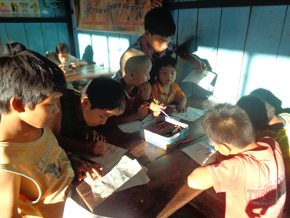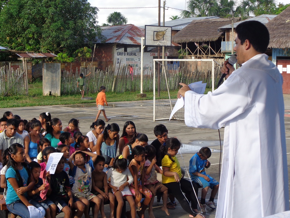 W końcu maja organizowaliśmy tydzień zawodów sportowych poprzedzających święto Maryi Wspomożycielki Wiernych. Od środy do soboty można było zaprezentować swoją technikę i zawzięcie w poszczególnych dyscyplinach: piłkarzyki, tenis stołowy, koszykówka, siatkówka, piłka nożna. W sobotę wieczorem w oratorium odbyła się tzw. velada (z hiszp. vela – „świeca”) – czuwanie przy figurce Maryi przeplatane pieśniami, tańcami ludowymi. Wspaniale zaprezentowali się uczniowie z internatu prowadzonego przez siostry zakonne. Wszyscy pochodzą z rodzin indiańskich, więc przedstawili nam typowe tańce plemion awajun i achuar. Stroje efektowne – chłopaki mieli na głowach opaski z piór tukana i rodzaj spódnicy (nie jest to szkocki wynalazek!) z charakterystycznej tkaniny oraz bransoletki (założone poniżej kolan) pełniące rolę instrumentów muzycznych, gdyż jak grzechotki dźwięczały przy każdym energicznym ruchu; dziewczyny w czerwonych sukienkach, na biodrach miały upiększenia z muszel, szeleszczących w tańcu. Wszyscy na boso. Muzyka skoczna i radosna.
