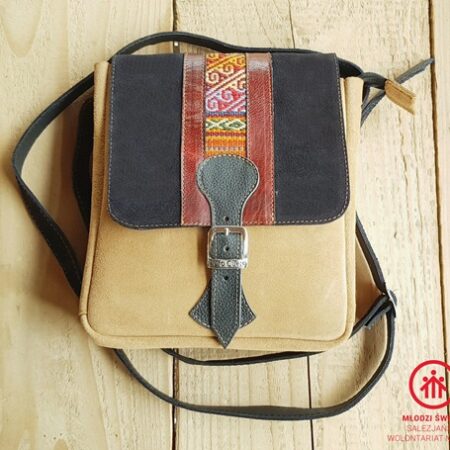 Unikalna torebka listonoszka z Peru,kremowa-Rękodzieło BOHO