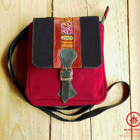 Unikalna torebka listonoszka z Peru,bordo-Rękodzieło BOHO