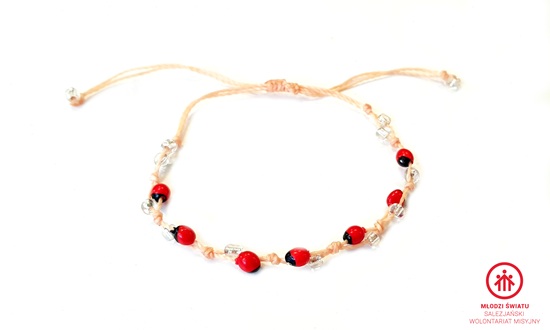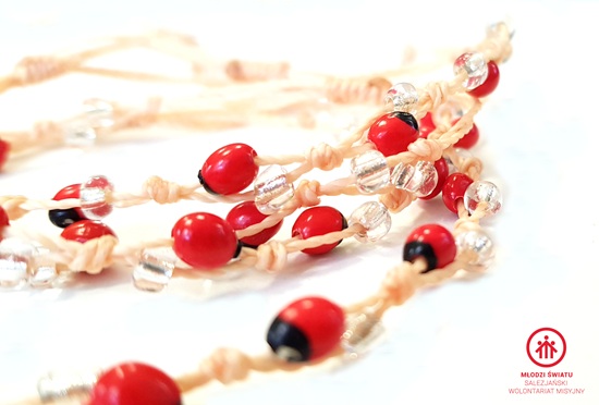Materiał: sznurek, nasiona huayruro,koraliki
