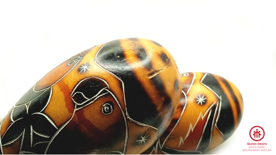Marakasy z tykwy ręcznie rzeźbione, podwójne, duże ok. 30 cm_ Peru