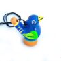 Bogato zdobiona, oryginalna okaryna peruwiańska w kształcie ptaszka. Po napełnieniu jej wodą wydaje ładny dźwięk. Można używać również bez wody.