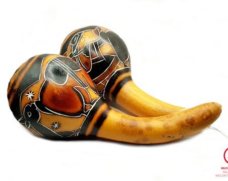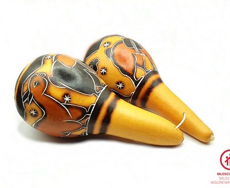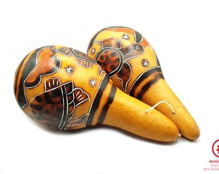 Marakasy z tykwy ręcznie rzeźbione, podwójne, średnie ok. 23 cm_ Peru