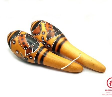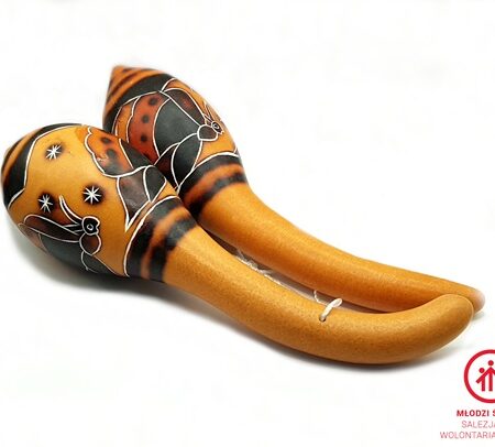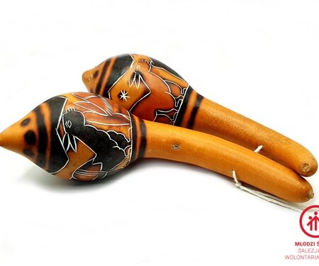 Marakasy z tykwy ręcznie rzeźbione, podwójne, małe ok. 17-20 cm/1_ Peru