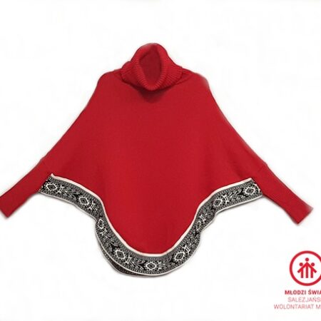 Poncho z dodatkiem wełny alpaki , czerwone_PERU