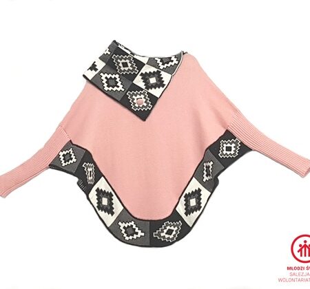 Poncho z dodatkiem wełny alpaki, różowe_PERU