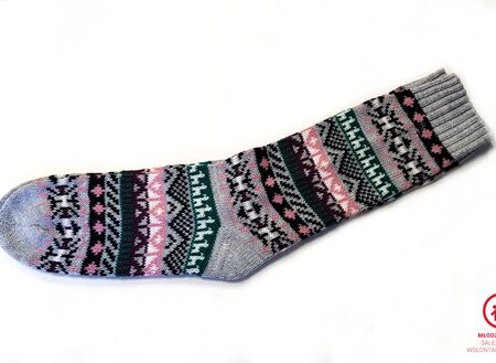 Skarpety etniczne z wełny alpaki, szaro różowe_PERU