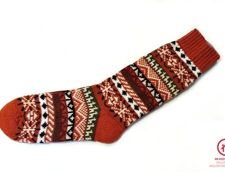 Skarpety etniczne z wełny alpaki,pomarańczowe_PERU