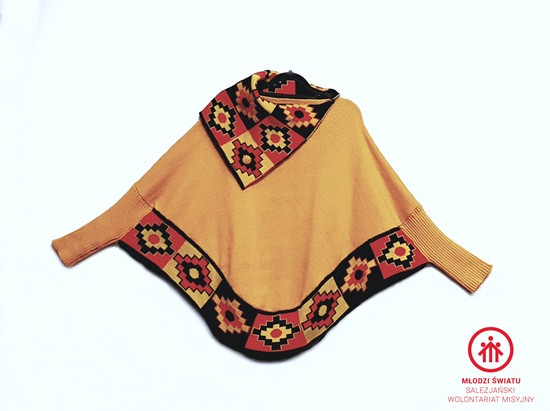 Poncho z dodatkiem wełny alpaki, żółte_PERU
