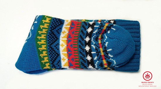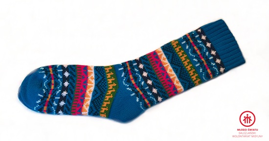 Skarpety etniczne z wełny alpaki, niebieskie_PERU