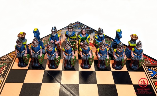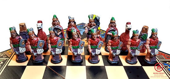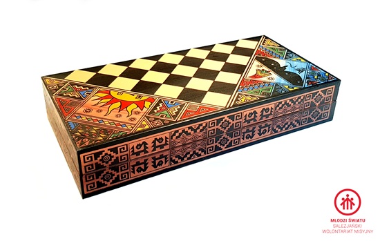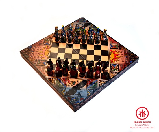 Pięknie wykonane szachy peruwiańskie, ręcznie malowane, które będą gratką dla niejednego sympatyka tej królewskiej gry. Rozmiary planszy: 26×26 cm. Pionek ma ok. 5 cm. wysokości, natomiast figury ok 4- 5 cm. Idealne na oryginalny i ciekawy prezent!