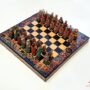 Pięknie wykonane szachy peruwiańskie, ręcznie malowane, które będą gratką dla niejednego sympatyka tej królewskiej gry. Rozmiary planszy: 26×26 cm. Pionek ma ok. 5 cm. wysokości, natomiast figury ok 5 – 6,5 cm. Idealne na oryginalny i ciekawy prezent!