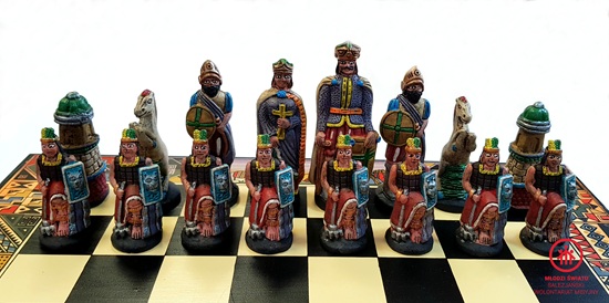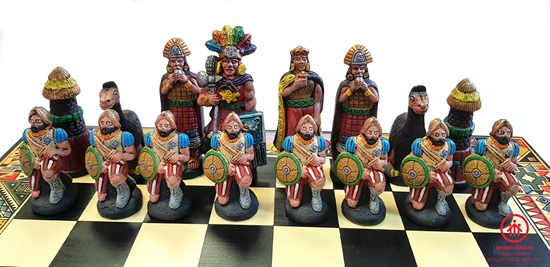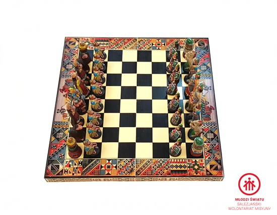 Pięknie wykonane szachy peruwiańskie, które będą gratką dla niejednego sympatyka tej królewskiej gry. Rozmiary planszy: 40 x 40 cm. Pionek ma ok.  6,5 cm. wysokości, natomiast figury ok .7 – 10,5 cm. Idealne na oryginalny i ciekawy prezent!