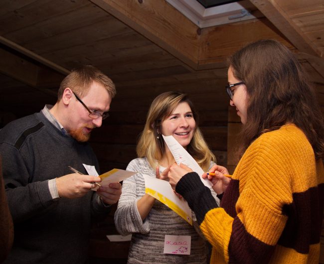 Sobotę także rozpoczęliśmy od wspólnej Mszy św. Następnie zostaliśmy zaproszeni do wypełniania ewangelicznego wezwania do miłości bliźniego w bardzo konkretnym wymiarze: dostrzegania dobra w drugim człowieku i mówienia mu o tym, co pięknego w nim widzimy. Najpierw przypomnieliśmy sobie, jakie warunki powinien spełniać komplement, aby był wartościowy i budujący dla osoby, która go słyszy, a potem wszyscy podjęliśmy wyzwanie, aby przez kolejne godziny zjazdu z uważnością poświęcić czas drugiemu człowiekowi i skupić się na tym, co nas w nim zachwyca, ciekawi, inspiruje.