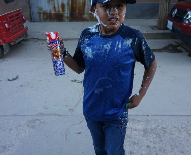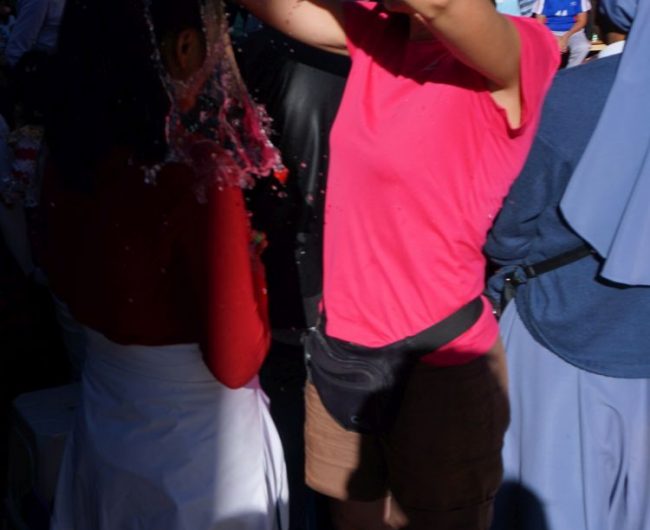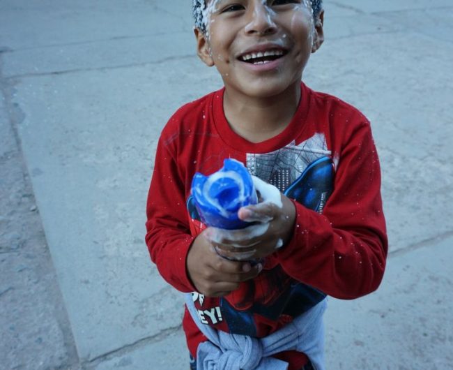 Tradycją w okresie karnawału jest używanie pianki w sprayu i lanie się wodą, zupełnie jak u nas w lany poniedziałek, tylko że tutaj trwa to dwa tygodnie. Ludzie chodzą po ulicach ze sprayami w kieszeniach i balonikami z wodą w plecakach. Każdy może oblać wodą każdego i nie można się z tego powodu na nikogo obrazić. Wszystkie twarze były przystrojone w białą piankę i szerokie uśmiechy od ucha do ucha.