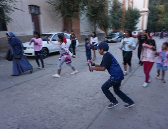 W większości miast, w dni, które przypadają główne atrakcje karnawału, szkoły są zamykane by wszyscy mogli uczestniczyć w zabawie. Tak też jest w Tupizie. Nasze dzieci miały wolne więc mogły także korzystać z zaplanowanych atrakcji, wyjść na chwilę z Domu Dziecka i bawić się z innymi dziećmi, aż miło było patrzeć.